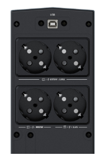 Incluye puertos USB A y C frontales para cargar dispositivos móviles de forma rápida y sencilla. Las barras LED y el display LCD permiten identificar al instante el estado del SAI: normal, modo batería o incidencias.